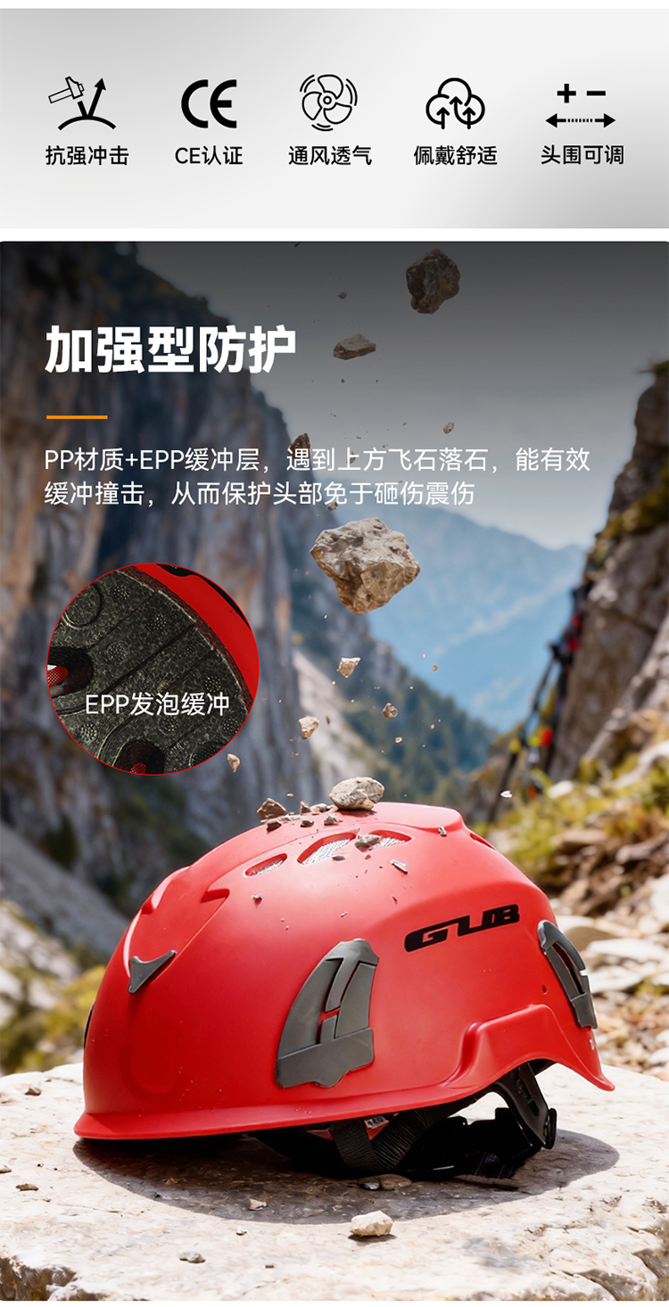 特色:简约大方的外观设计,PP+EPS高强度外壳不惧强烈冲击,贴心半包边内衬佩带舒适,自带头灯卡扣,支持加装头灯。带耳罩插口,可加装防噪耳罩。