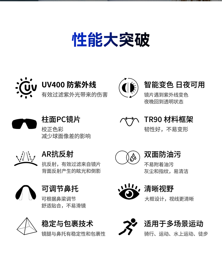 类型:防油污抗反射变色骑行眼镜