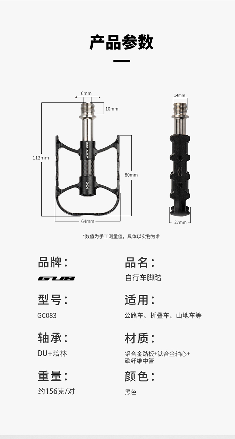 材质:铝合金脚踏主体+碳纤维中管+钛合金轴芯