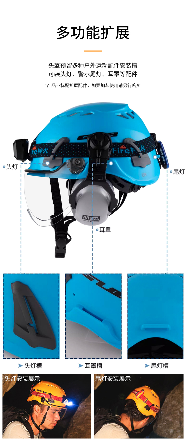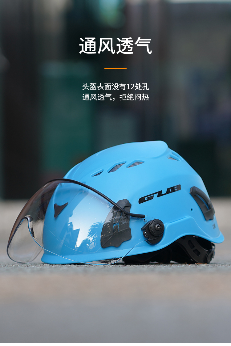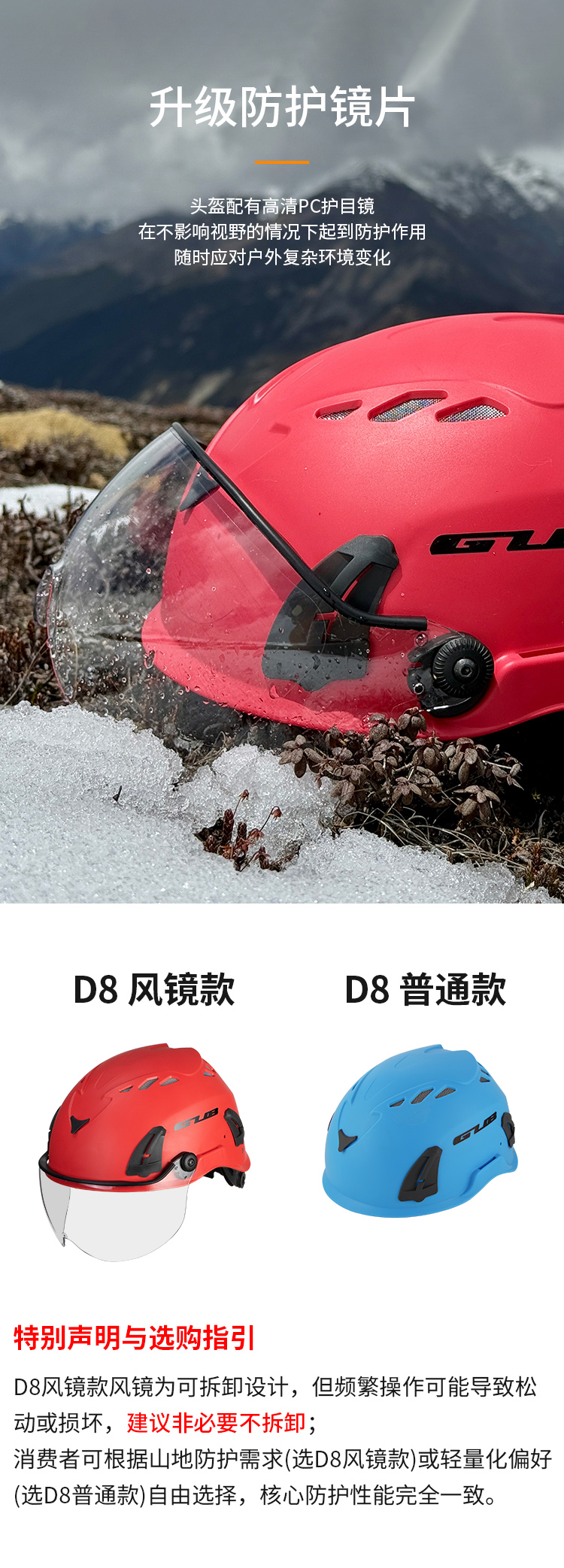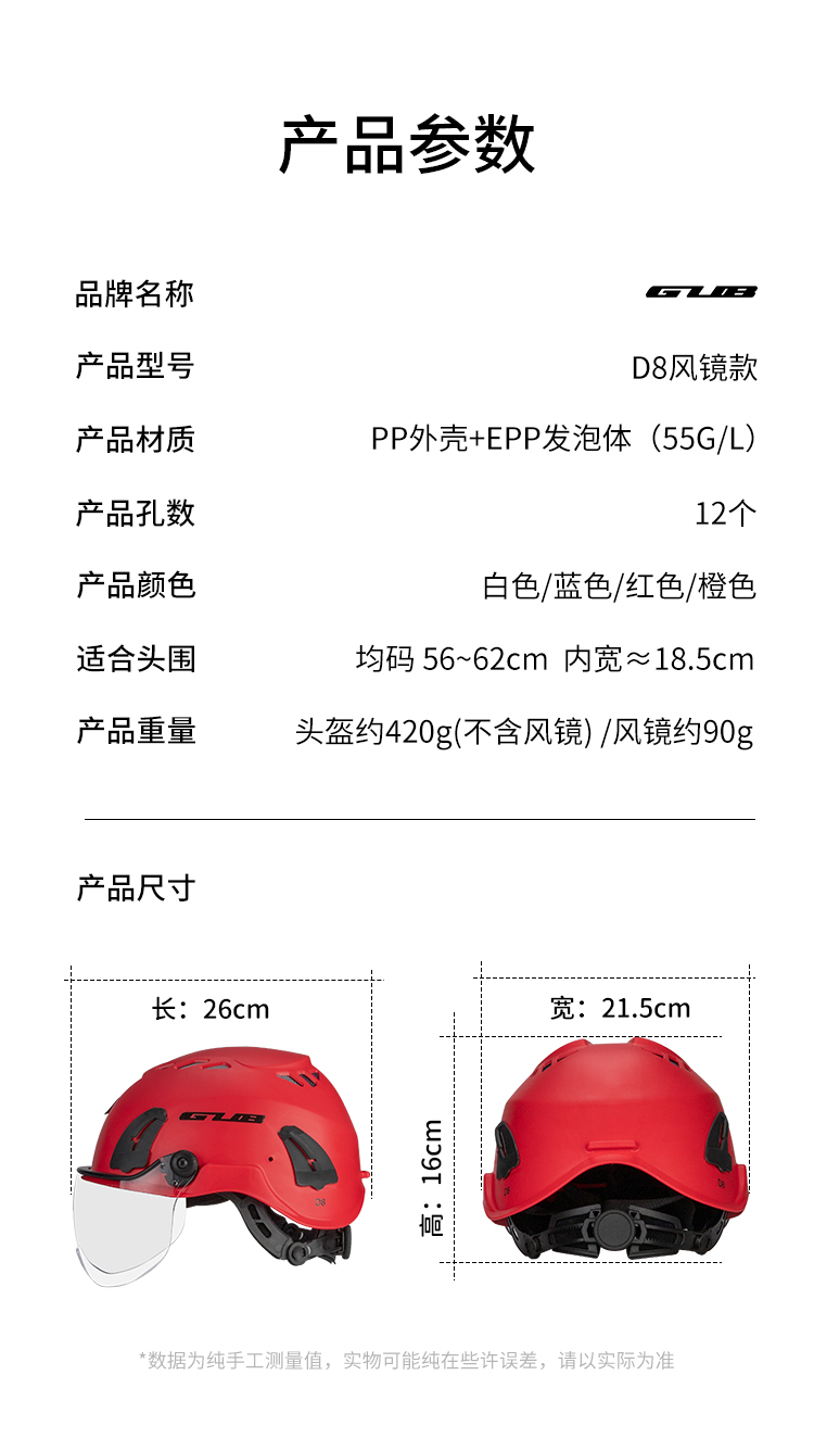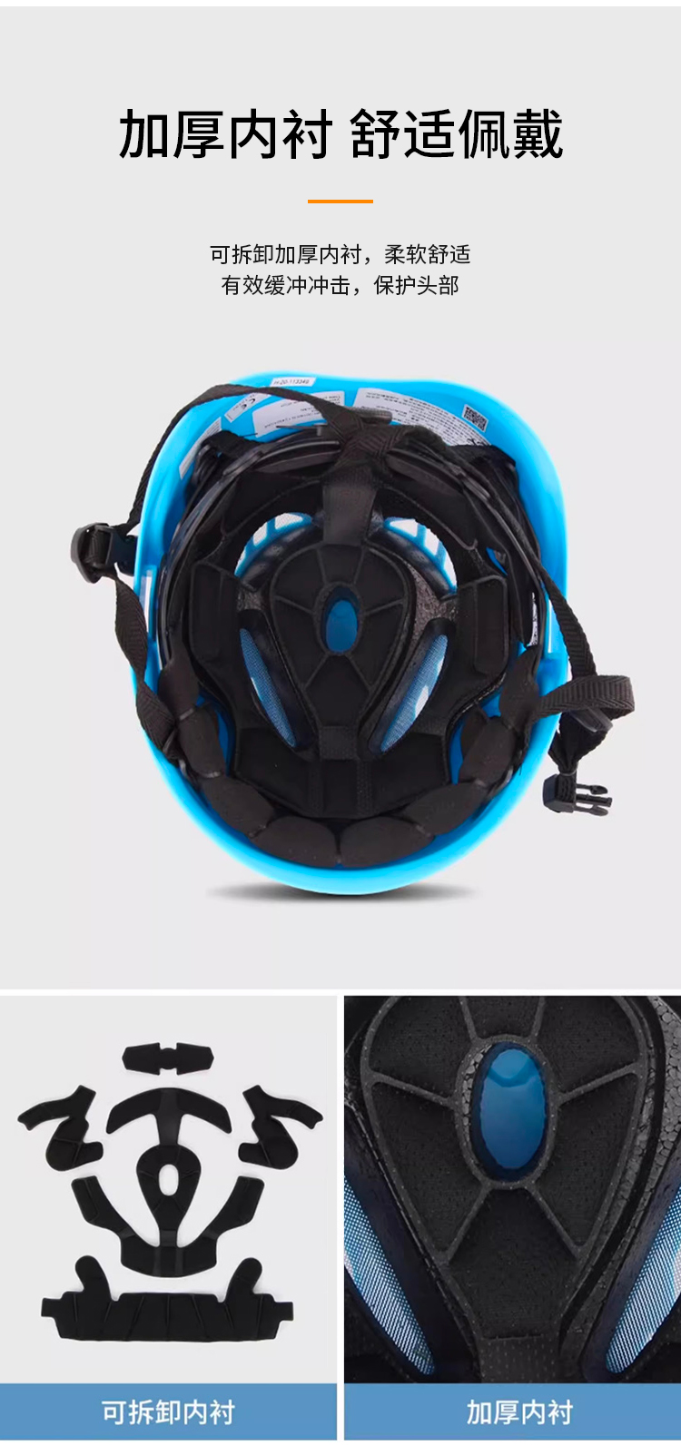 特色:简约大方的外观设计,升级可拆卸风镜,PP+EPS高强度外壳不惧强烈冲击,贴心半包边内衬佩带舒适,自带头灯卡扣,支持加装头灯。带耳罩插口,可加装防噪耳罩。