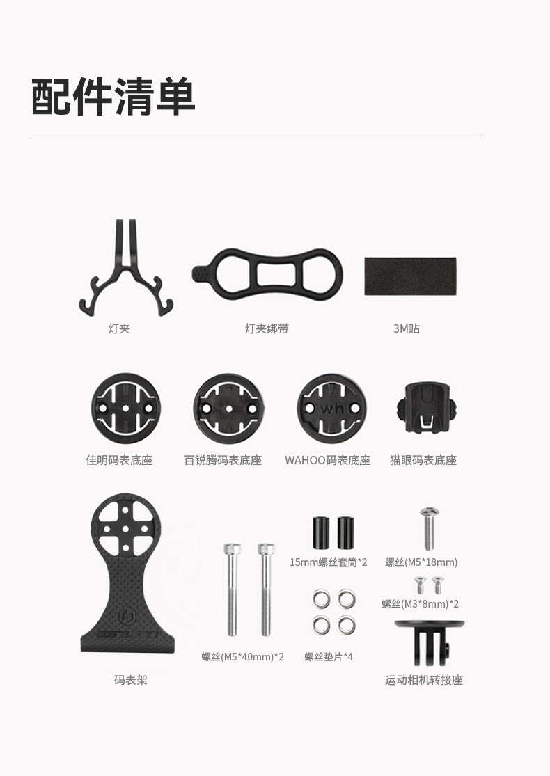 支持码表:GARMIN全系列(兼用行者/黑鸟/iGPS等),猫眼全系列,WAHOO系列,百锐腾系列,迈金系列