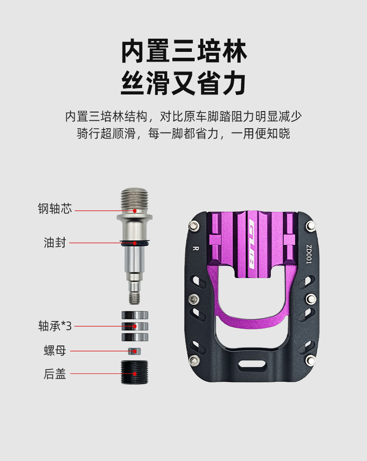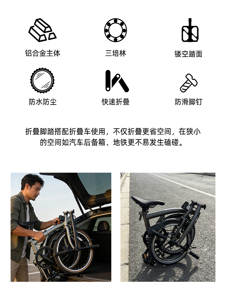 材质:铝合金脚踏主体+铬钼钢轴芯