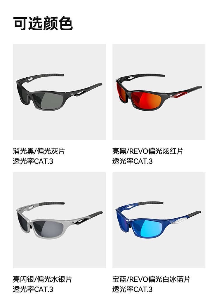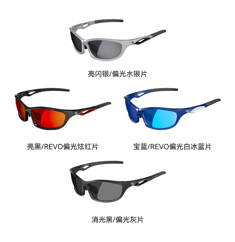 颜色:亮闪银/偏光水银片、宝蓝/偏光白冰蓝片、亮黑/偏光炫红片、消光黑偏光灰片