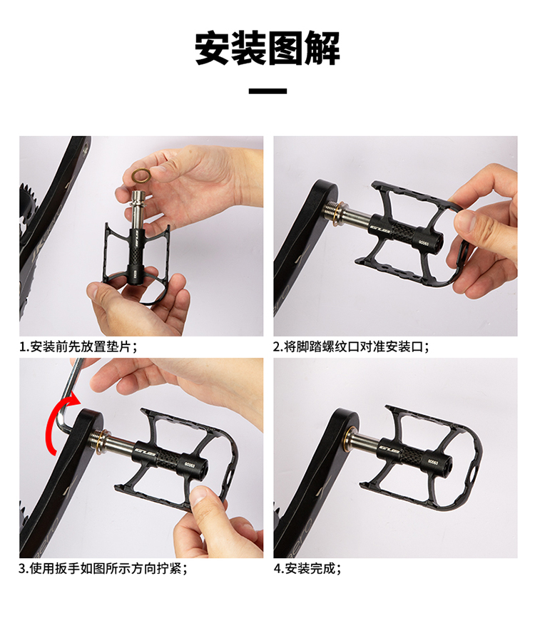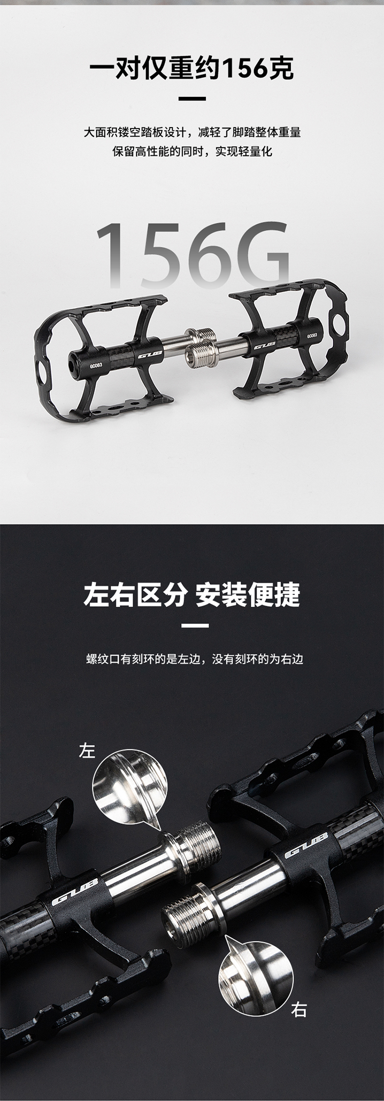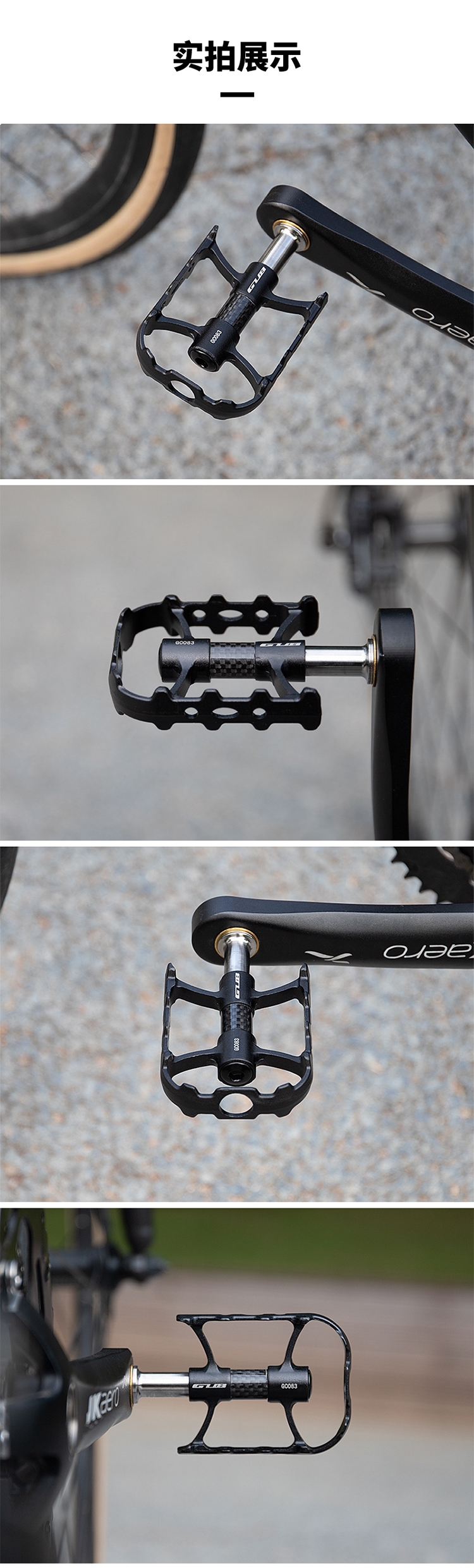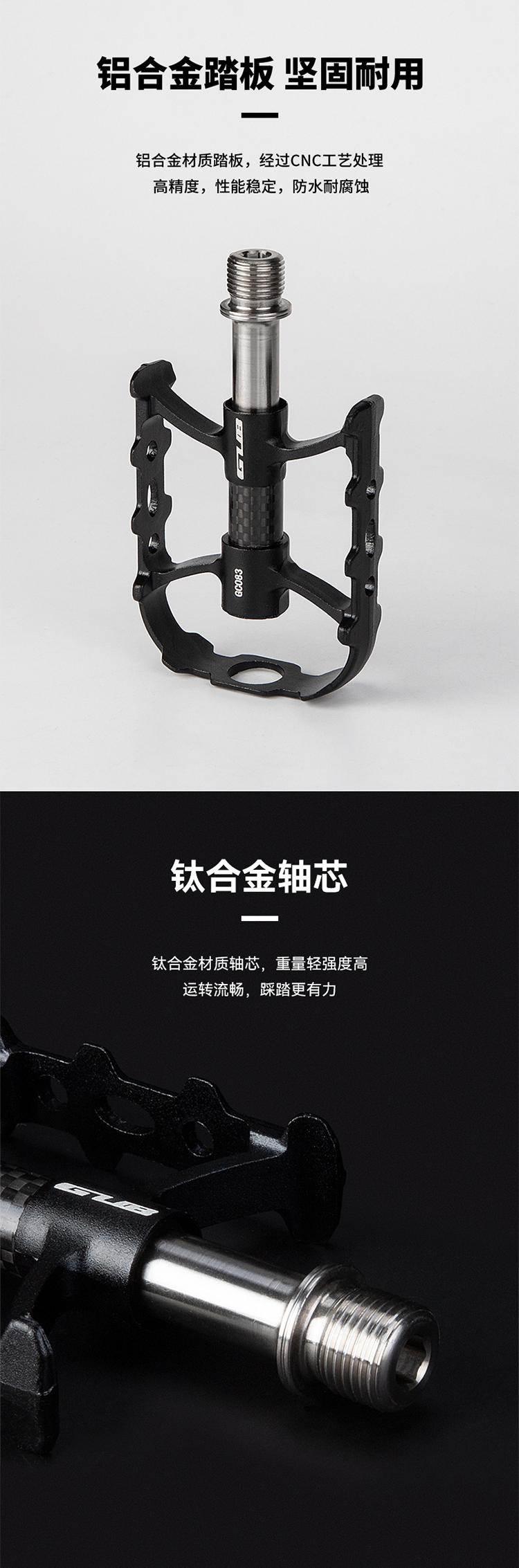 材质:铝合金脚踏主体+碳纤维中管+钛合金轴芯