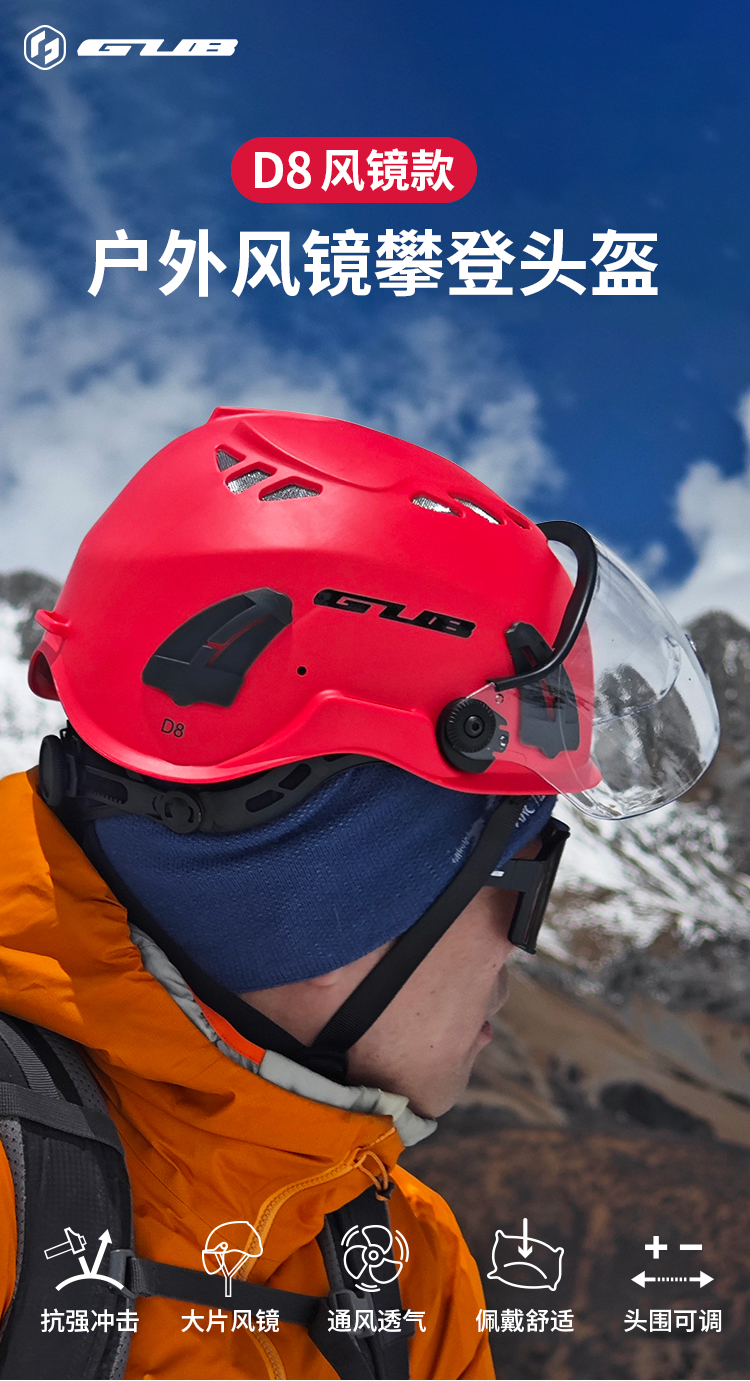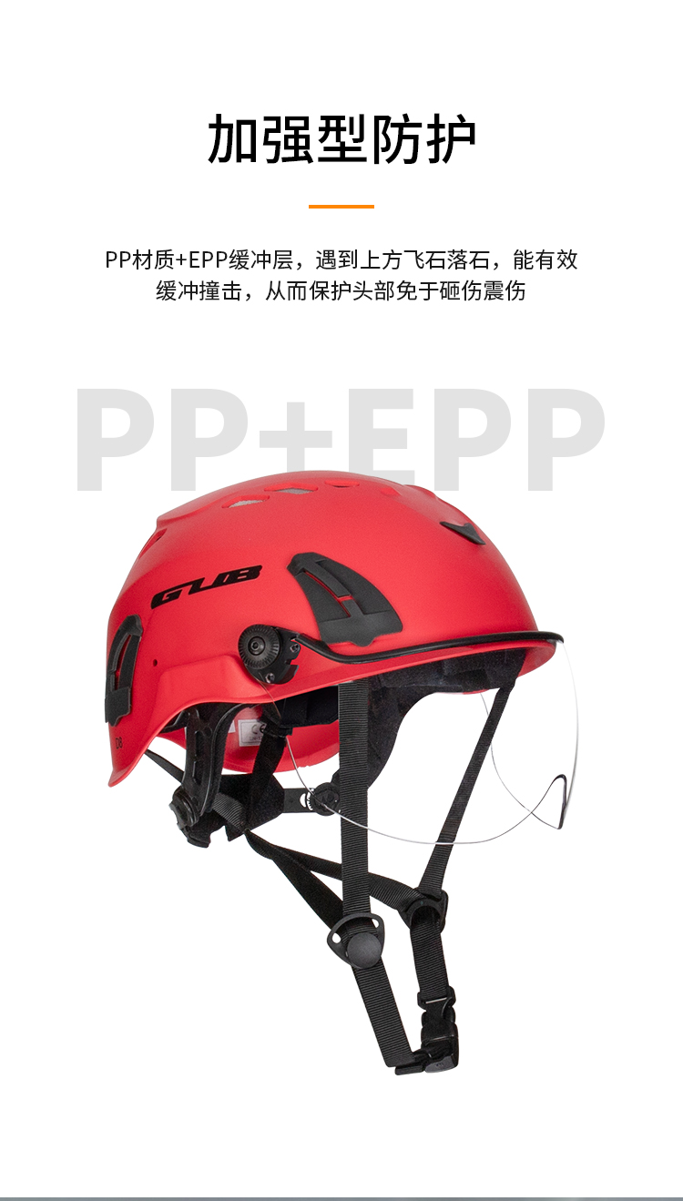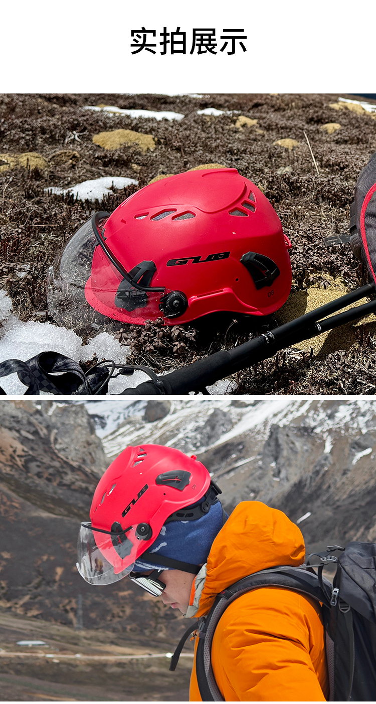 特色:简约大方的外观设计,升级可拆卸风镜,PP+EPS高强度外壳不惧强烈冲击,贴心半包边内衬佩带舒适,自带头灯卡扣,支持加装头灯。带耳罩插口,可加装防噪耳罩。