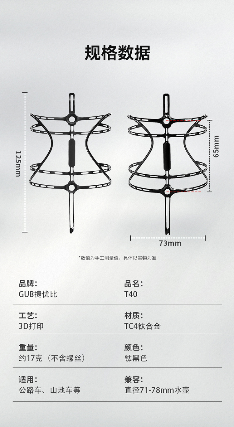特点:3D打印工艺,钛合金镂空架体,耐磨耐腐蚀,超轻仅重17克