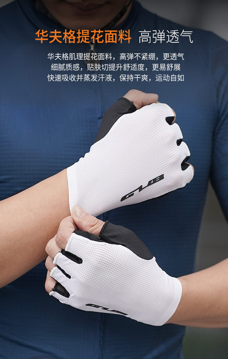 材质:手背华夫格提花面料、掌面耐磨防滑超纤、高密度硅胶缓震立柱、中指/无名指快脱指袢设计、手腕便携拉手穿戴更方便
