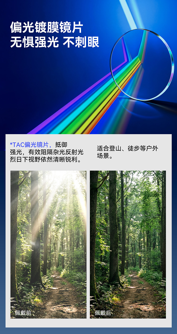材质:TAC镜片、TR90镜架