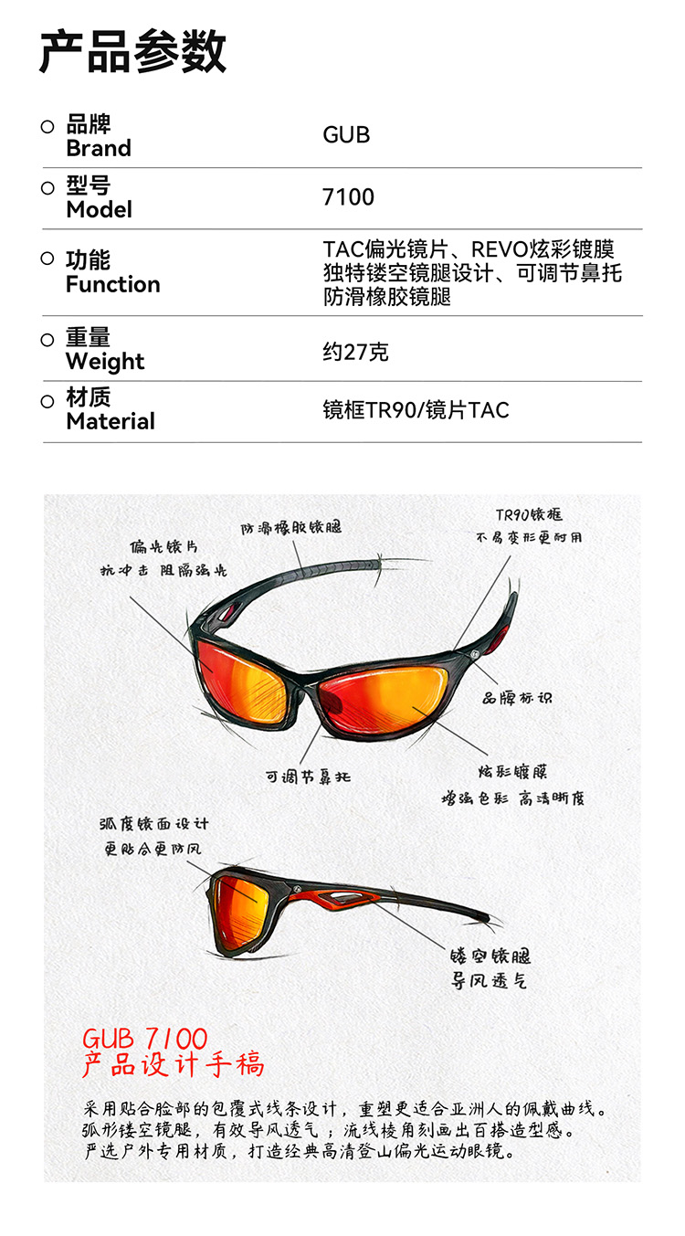 名称:GUB 7100登山徒步跑步偏光眼镜